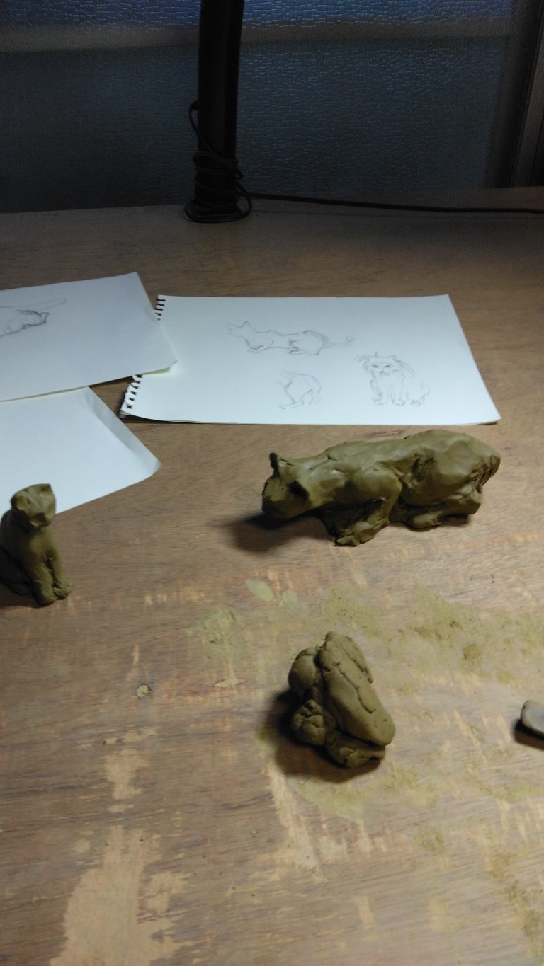 こっちから猫追いかけてはダメ。来るのを待って描く。