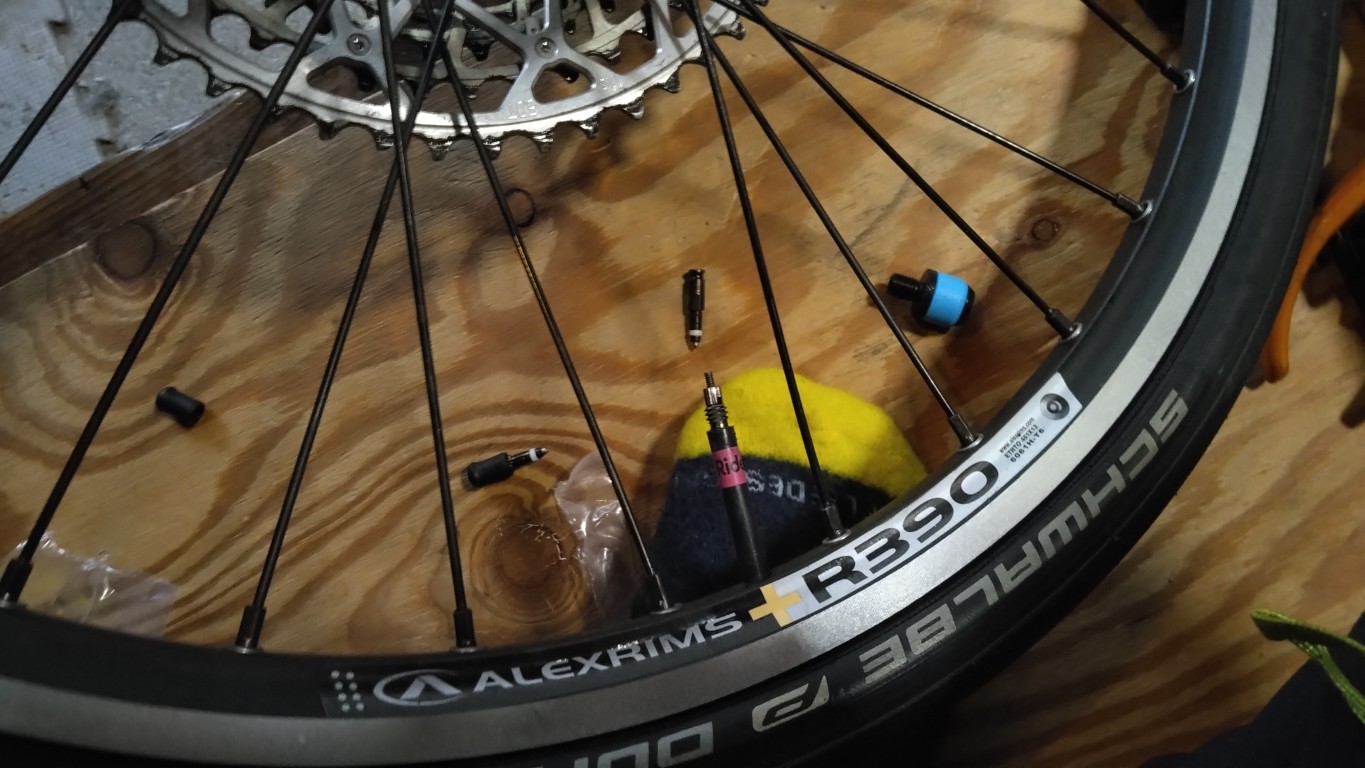 結果バルブコアの背が伸びてあまつさえポンプヘッドもかさばるから20インチ(451)でスプロケ11-51Tなんてつけてるとハウジングが結構ギリギリ。これリムハイトなバトンホイール持ち(俺)が買いだめしてるバルブ長65mmのチューブなんか普通のリムに流用できるのか心配になってきた(が面倒くさいので検証してない)。