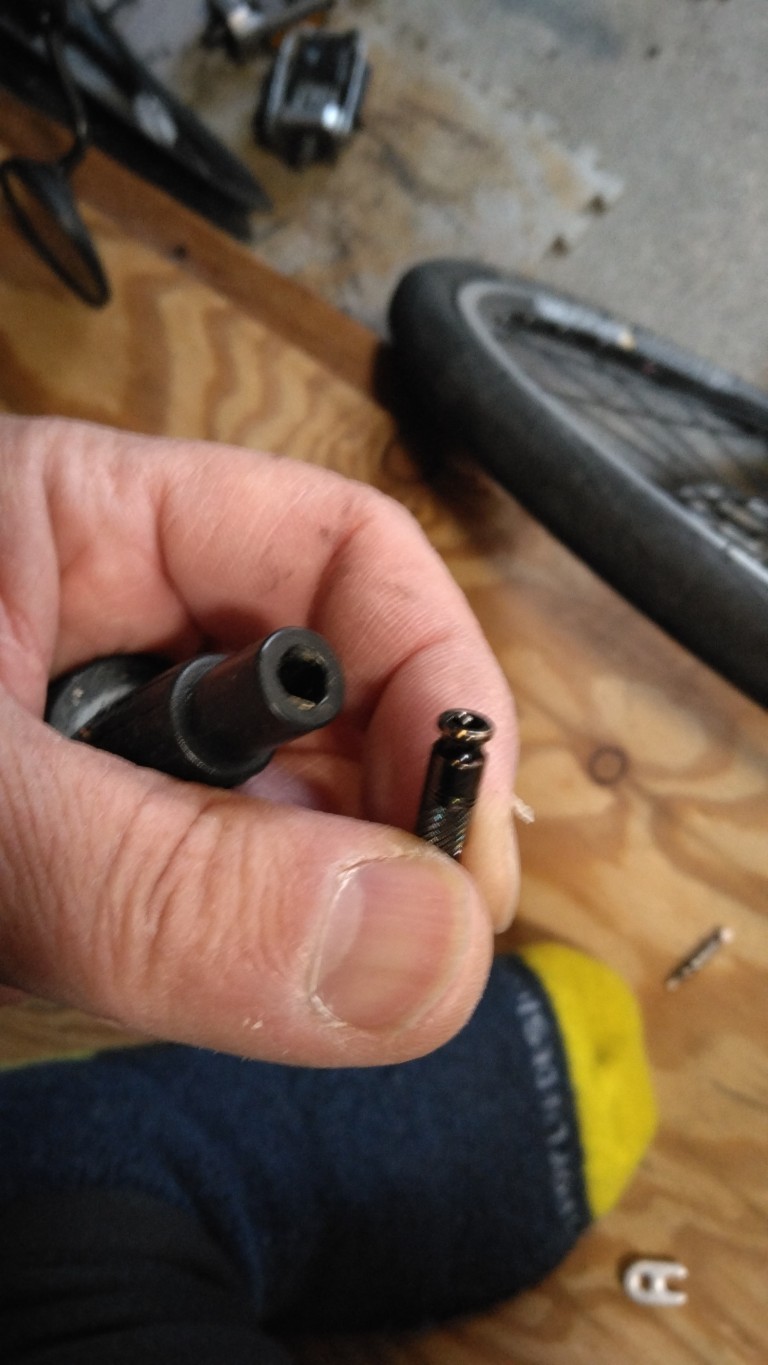 バルブコア外しといえばビットリアのシーラントボトルの栓がコア外しも兼ねてて写真右下の「A」の字みたいなよくあるコア外しより回しやすくてさすが自転車王国イタリア~ンと思ったらclikvalveのコアの頭がでかくて入らなかった。