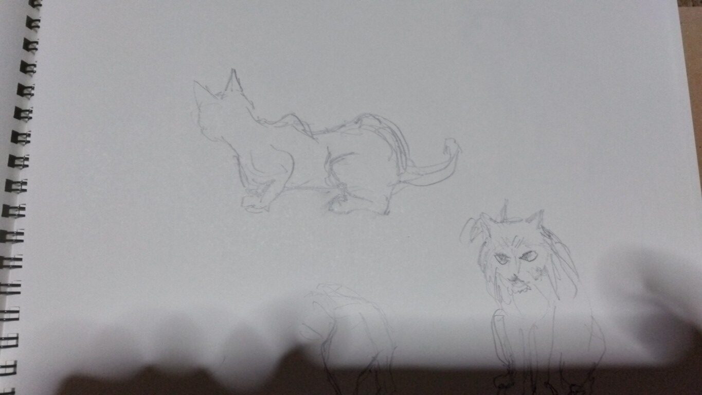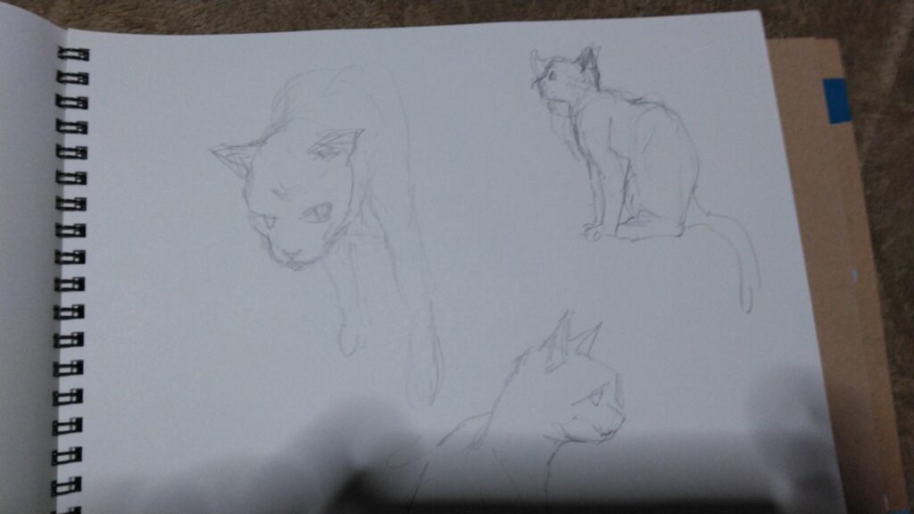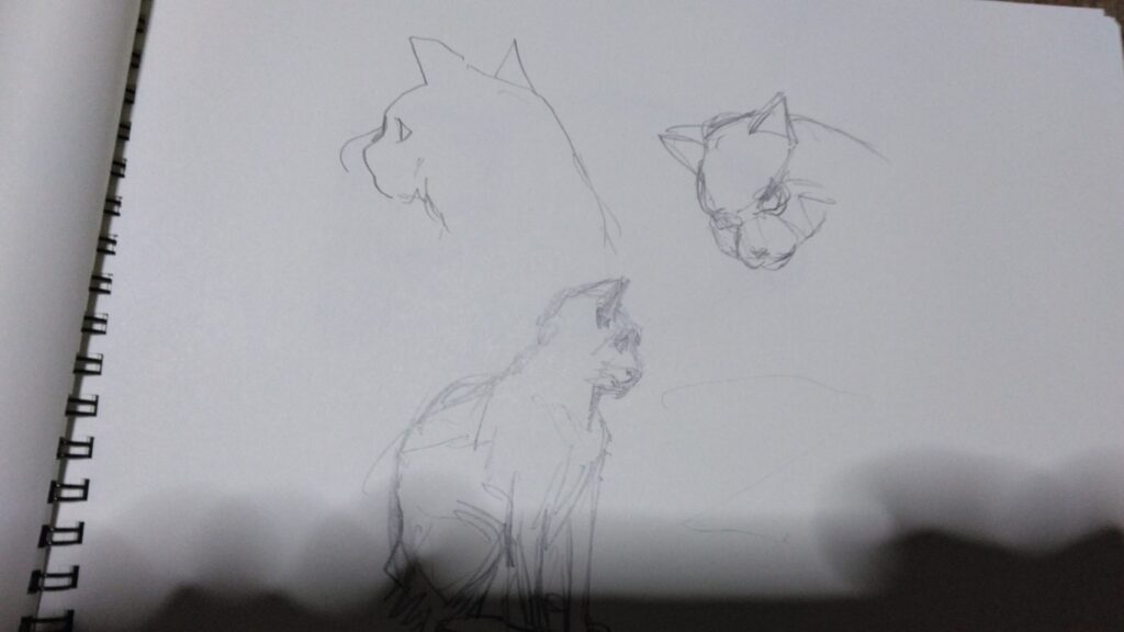 こっちから猫追いかけてはダメ。来るのを待って描く。