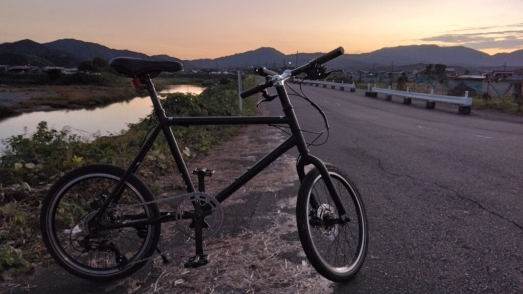 明け方5時ごろ駐車場の車に忘れ物したので取りに行ったまま朝日を見に行く図。こういうことはリカンベントじゃできないし、フレームは折りたたんでないけどステムは畳んでるDAHON系でもわずか1か2手順の違いなんですが、ダメですね。壁にひっかけてあるミニベロを外套でも取るように下して乗る。